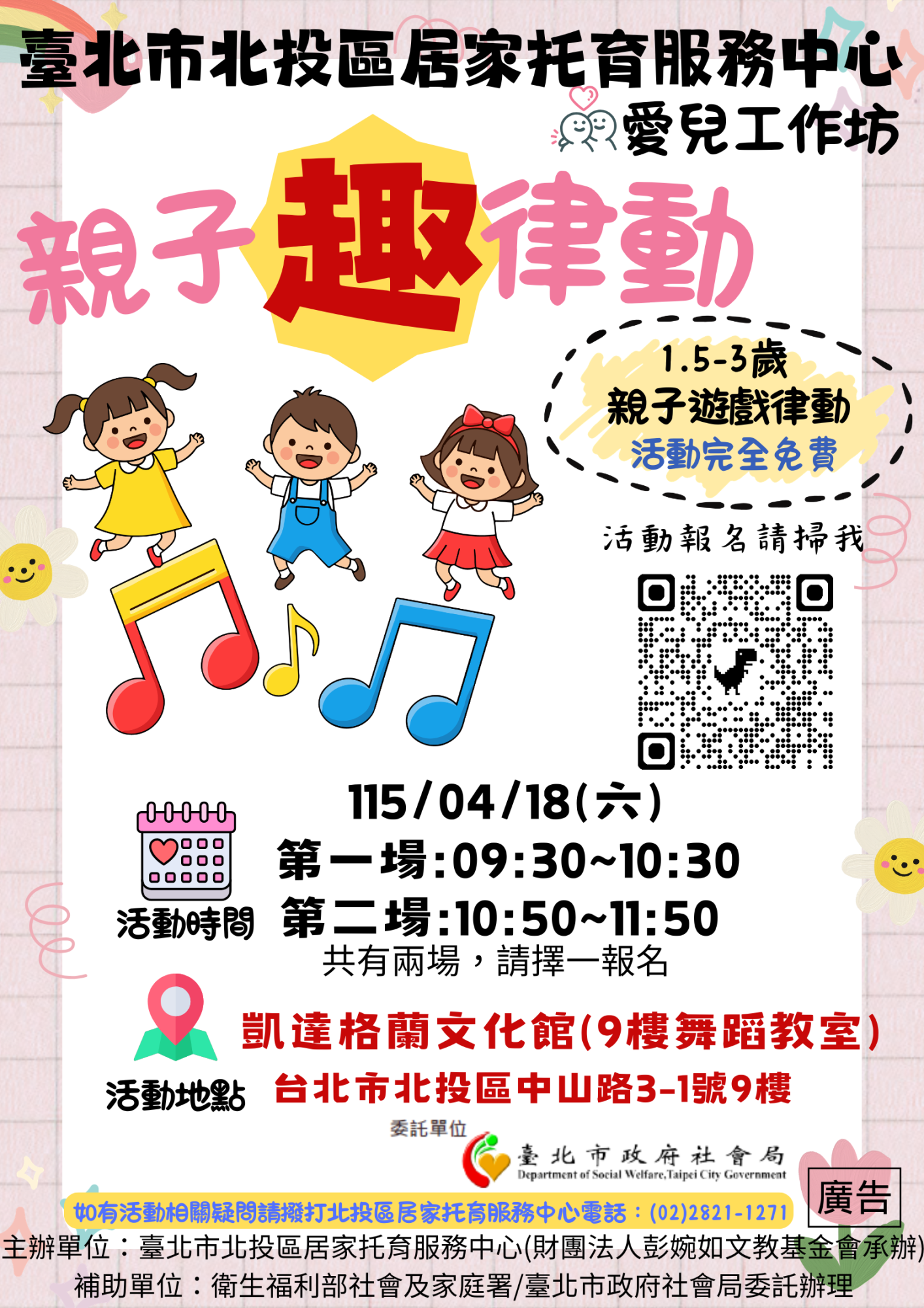 1. 當天若有幼兒或家長身體不適,亦或者額溫高於37.5度,恕無法參加活動。