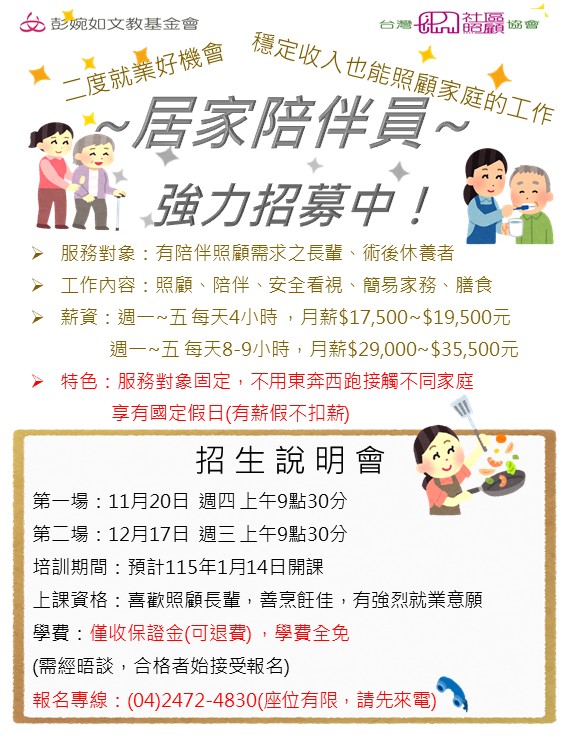 [台中]12/17(三)居家陪伴培訓說明會09:30
