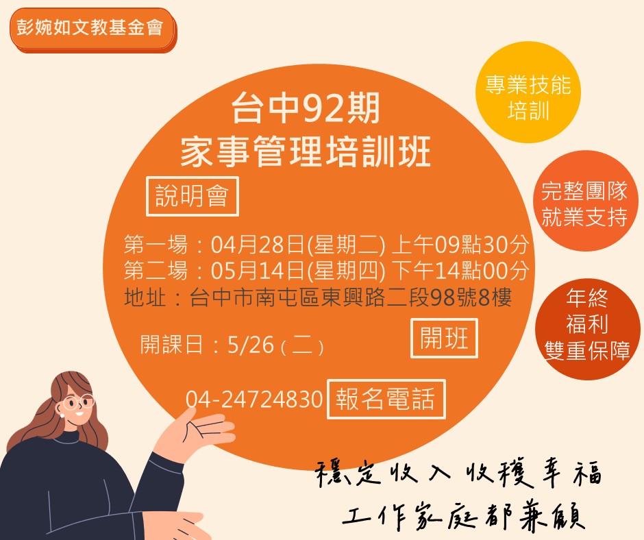 - 未詳盡事宜依培訓班規定,有任何相關疑問,洽詢專線:(04)2472-4830