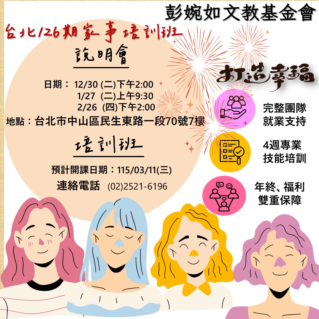 [台北]2/26(四)家事126期培訓說明會14:00