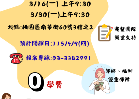 [桃園]1/22(四)家事73期培訓說明會9:30