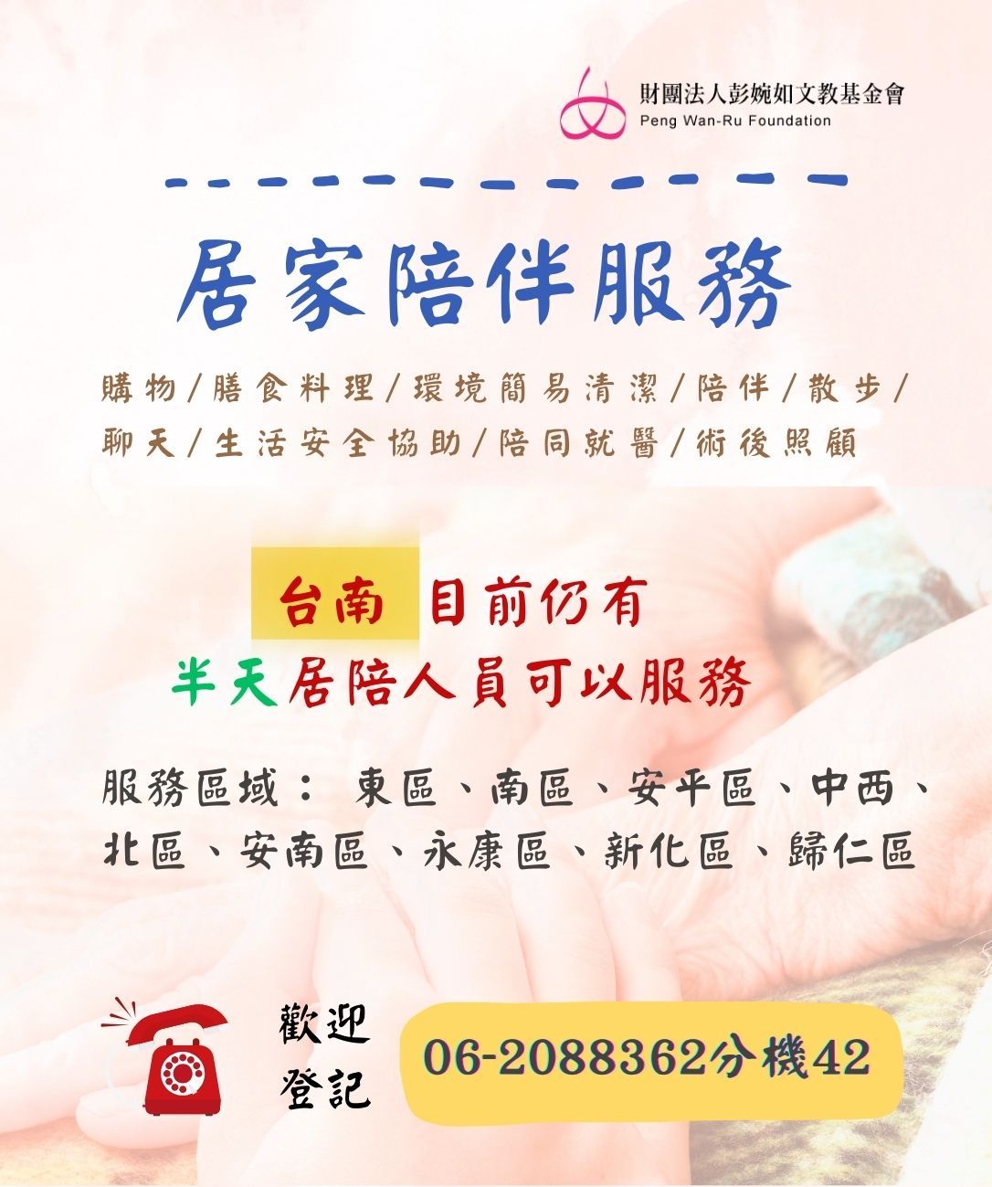 [台南]有"4小時"居家陪伴員可服務