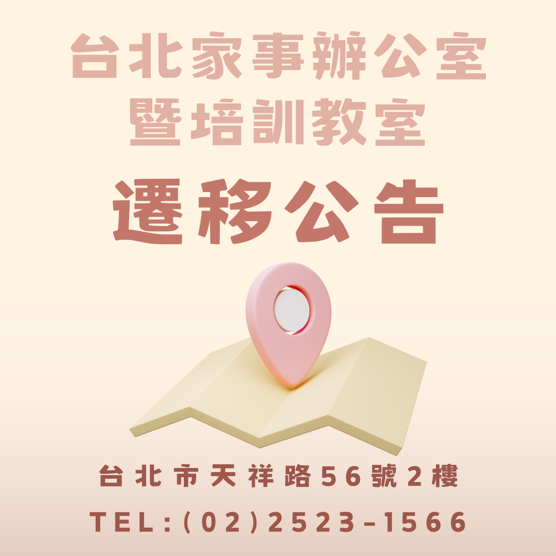 【台北家事辦公室及培訓教室遷至新址】