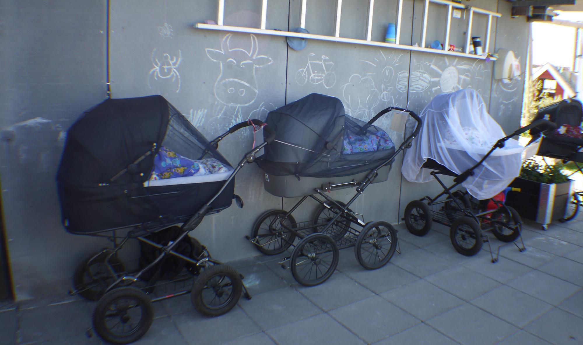 北歐人很喜歡讓小孩在戶外遊玩,認為曬太陽是一件很健康的事情。我們所參訪的丹麥托嬰中心中午午睡時,會讓小孩坐上娃娃車在戶外睡覺,因為讓小孩接觸自然,能夠促進感官發展,曬點太陽,更是增進健康的好方法。